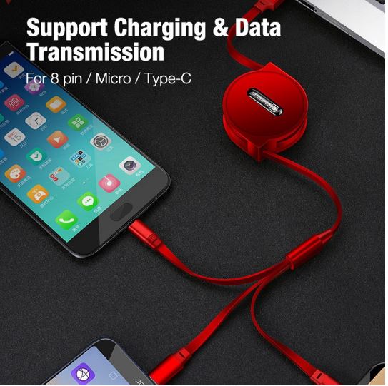 CAFELE (Micro USB, Type-C, IOS) 3 in 1 Retractable Data Sync Charging Cable [ Item No 1707]