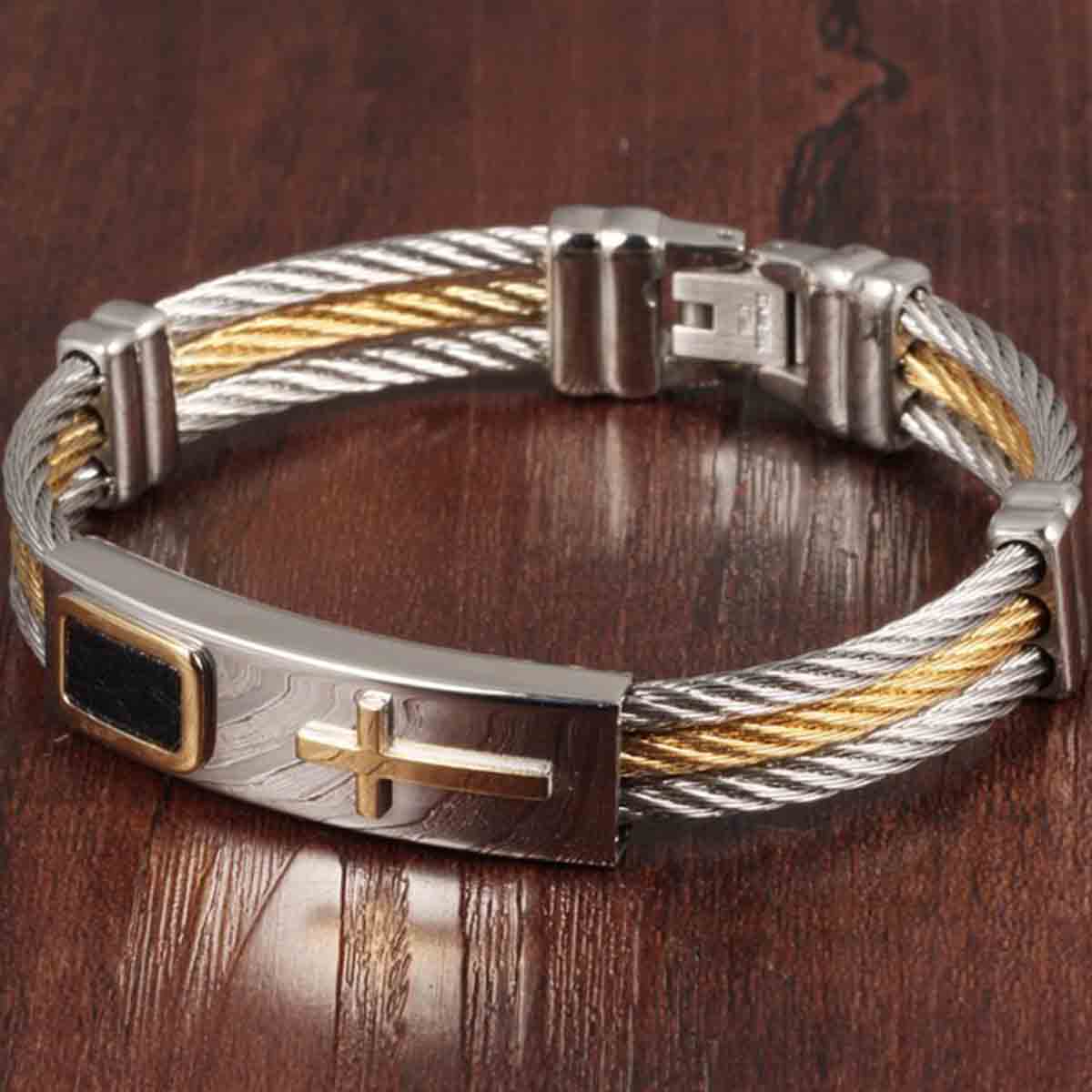2016 New Gold Jesus Cross Bracelet Men Jewelry Stainless Steel Mens Rock Bracelets Bangles Leather Pulseira Masculina [item no.1141]