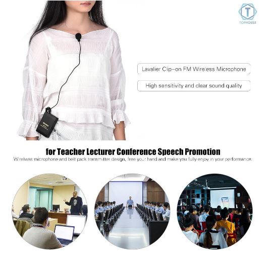 Portable Lavalier Lapel Collar Clip-on FM Wireless Microphone System Voice Amplifier 1/4in Output Plug with Bodypack Tr [Item No.1818]